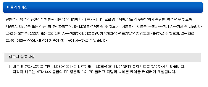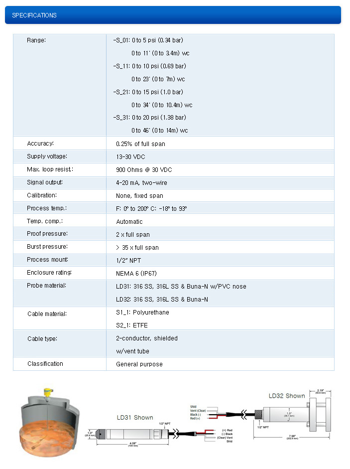 • ºÎ½Ä¼º ¾×»ó¿¡ ³»¼ºÀÌ ÁÁÀº 316 SS ÀçÁú°ú Æú¸®¿ì·¹Åº ¶Ç´Â ETFE ÄÉÀ̺íÀÚÄÏ • 122 kg °íÀå·Â ÄÉÀ̺í, À¯Áöº¸¼ö°¡ ÇÊ¿ä¾ø´Â breather tube ¿Í vent filter • ưưÇÑ LD32 ¸ðµ¨Àº ¿À¿°¹°ÀÌ ¾î´ÀÁ¤µµ ½×À̰ųª Ãæ°Ý¿¡ °ÇÑ ´ÙÀ̾ÆÈÄ·¥ µðÀÚÀÎÀ¸·Î µÇ¾î ÀÖ½À´Ï´Ù.