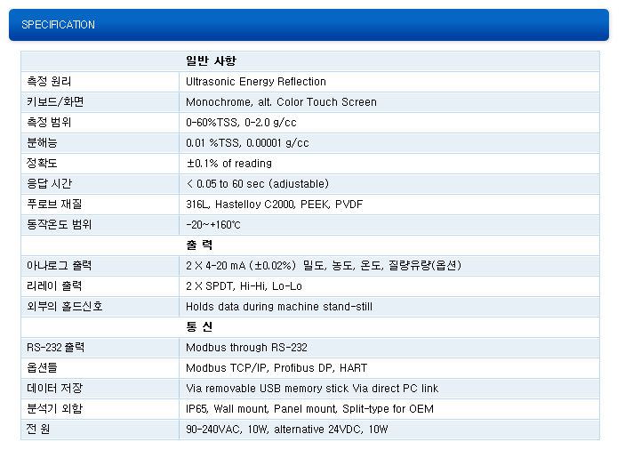 • 0-60% TSS, 0-2.0 g/cc ±îÁö ÃøÁ¤°¡´É
